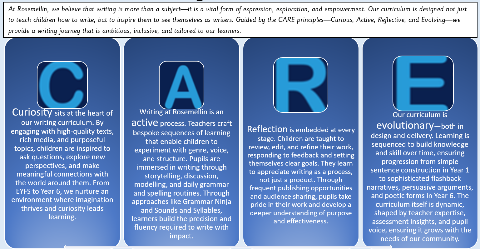 Our CARE-driven approach ensures that all pupils leave us not only with the skills they need, but with a lifelong love for writing and the belief that their voice matters.